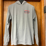 The hoody long sleeve tee is definitely one the most popular item we have in the shop. For those that don't want the bulk of a sweatshirt, but still love the "hoody" this piece is for you. A good quality, soft heavy tee with a hood! Best part, Finn approved!!!