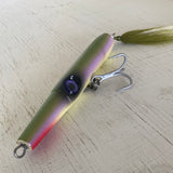 A tribute to classic Hab’s style, but reworked slightly to fit the 247 Lures components and production methods. When swift current or deeper water calls for it, this level-sink Stubby will sink a little faster than the traditional 7” and 9” Needlefish. This Stubby design also comes in handy when a swift wind is in your face to help extend that casting distance just a bit further.