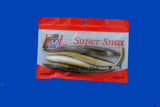 The Fish Snax Super Snax is a 9-1/2 inch bait that is effective for almost all inshore and offshore species. This twitch bait works great rigged weighted and unweighted. It's a dense plastic that is both durable and casts well in all sorts of conditions. It's become a favorite bait for bass fishermen and tuna fishermen.