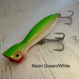 Super Strike Sinking Little Neck Poppers, Great casting Popping lure that will sink when paused. When fished slow it will swim side to side underneath the water. You can also work pop this lure on top, adding an occasional pause sometimes draws strikes.