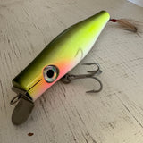 "The Danny Swimmer is one of my original designs and has been producing fish for almost 20 years. They weigh in around 2 3/4oz and are about 6" long. They are usually retrieved very slowly on or just below the surface. The Danny plug is a classic and should be a part of every surf bag.