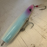 The Loaded Jigsmith is possibly my most used plug. It is essentially a sinking pencil popper that is designed to cast extreme distances. I work them on top just like a pencil but occasionally stop reeling while continuing to work the rod tip allowing the plug to sink. Fish frequently crush the plug as it goes sub surface. I have a friend who fishes these day and night and used it almost exclusively last season – landing countless fish all over Long Island last year. If you fish the Cape Cod Canal – these are extremely useful for hitting distant breaking fish. They are approx 5″ long and weigh in around 2.7oz.