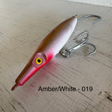 This stubby needlefish lure is great at getting out far. Use when tinker mackerel and small menhaden are present. Effective on many species from Bluefish of the Northeast to Peacock Bass in South America. Some folks like to fish these with a single feathered hook on the rear instead. Features a custom Rex-N-Painted Acrylic clear coat finish, stainless steel through-wire construction, and VMC 4X Strong hooks.