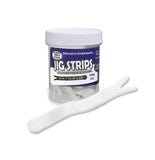 Jig Strips are durable and versatile baits developed using a unique flexible synthetic material. These trailers add strike simulating action and scent while maintaining their usefulness. Leave Jig Strips on your hook and use it over and over again. Spend less time changing your lure trailers and more time hauling in the big one – try a jar today and fish on.