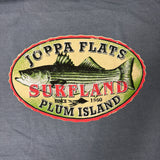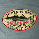 Joppa Flats, the area of water that you see on your way to Plum Island. A popular spot for bass fishing from the boat or wading out at the seawall. This design has been in the family of Surfland Gear for many years. Printed on Comfort Colors brand of clothing this 100% cotton long sleeve tee will be a favorite.