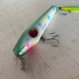 Shallow diving plugs with great action and killer wobble. Slow retrieve with a slight twitch of the rod now and then with help for sure! By bending the eye downward slightly these plugs will swim on the surface with a nice side to side wiggle and wobble and will produce a wake behind them. Or bend the eye upward and the will dive mid level.