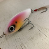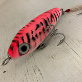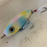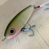 The Peanut Waverer is a great size and profile when herring or medium peanut bunker are present. Allow them to sink a bit and then twitch as you retrieve to get them to dart back and forth. They are about 3 1/2″ long and 1.25oz. These little guys have become a favorite lure of the creator.